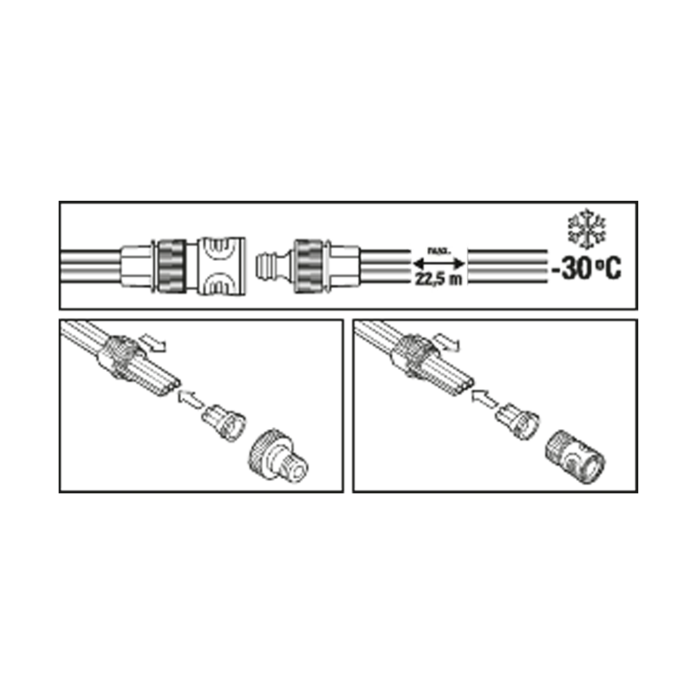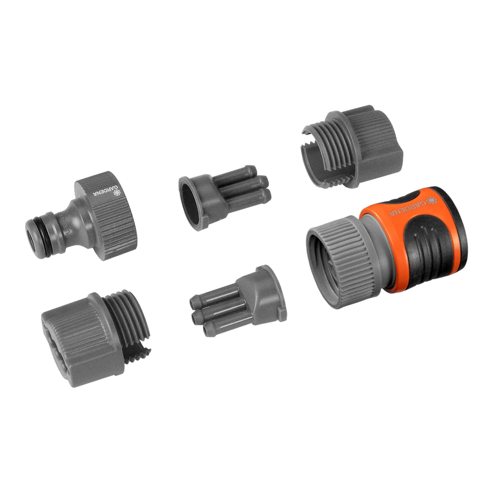 Het GARDENA Aansluitgarnituur voor sproeierslangen bevat alle aansluitstukken voor het Original GARDENA System voor aansluiting op de GARDENA Sproeierslang – bij de inlaat en uitlaat van de slang. De aansluitstukken kunnen gemakkelijk worden gemonteerd.