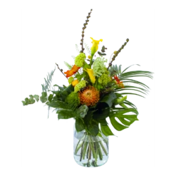 Dit bladboeket diverse prachtige bloemen. De combinatie van de verschillende gele, oranje en groene bloemen geven het boeket unieke uitstraling. Een boeket dat in vrijwel elk interieur past. Bovendien geschikt voor verschillende gelegenheden. Feliciteer, bedankt of verstuur zomaar dit prachtige handgebonden boeket en verras de ontvanger! * Exclusief accessoires en vaas