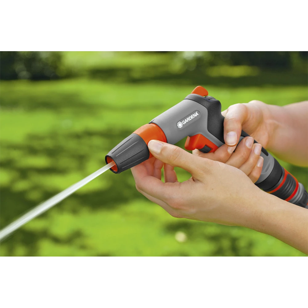 Comfortabel spuitpistool voor water geven en krachtige reiniging (volledig vorstbestendig). Het GARDENA Classic reinigingspistool met reguleerbare straal bidet u het juiste accessoire voor het reinigen en besproeien in huis en tuin. De broes is beschermd tegen vorst dankzij een intelligente technologie in de broes zelf. Regelbare straal. U kunt de ideale straal kiezen naar aanleiding van het werk. De harde straal is krachtig om gericht te reinigen. De fijne nevelstraal is ideaal om zachtjes uw planten te besproeien. Met vastzetknop voor meer gebruikscomfort. Niet-afneembare koppeling en dus niet te verliezen.