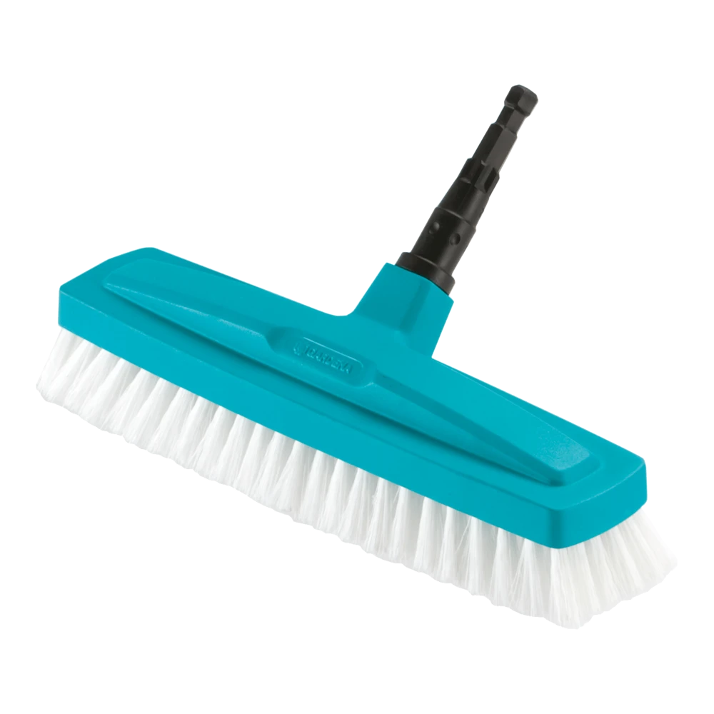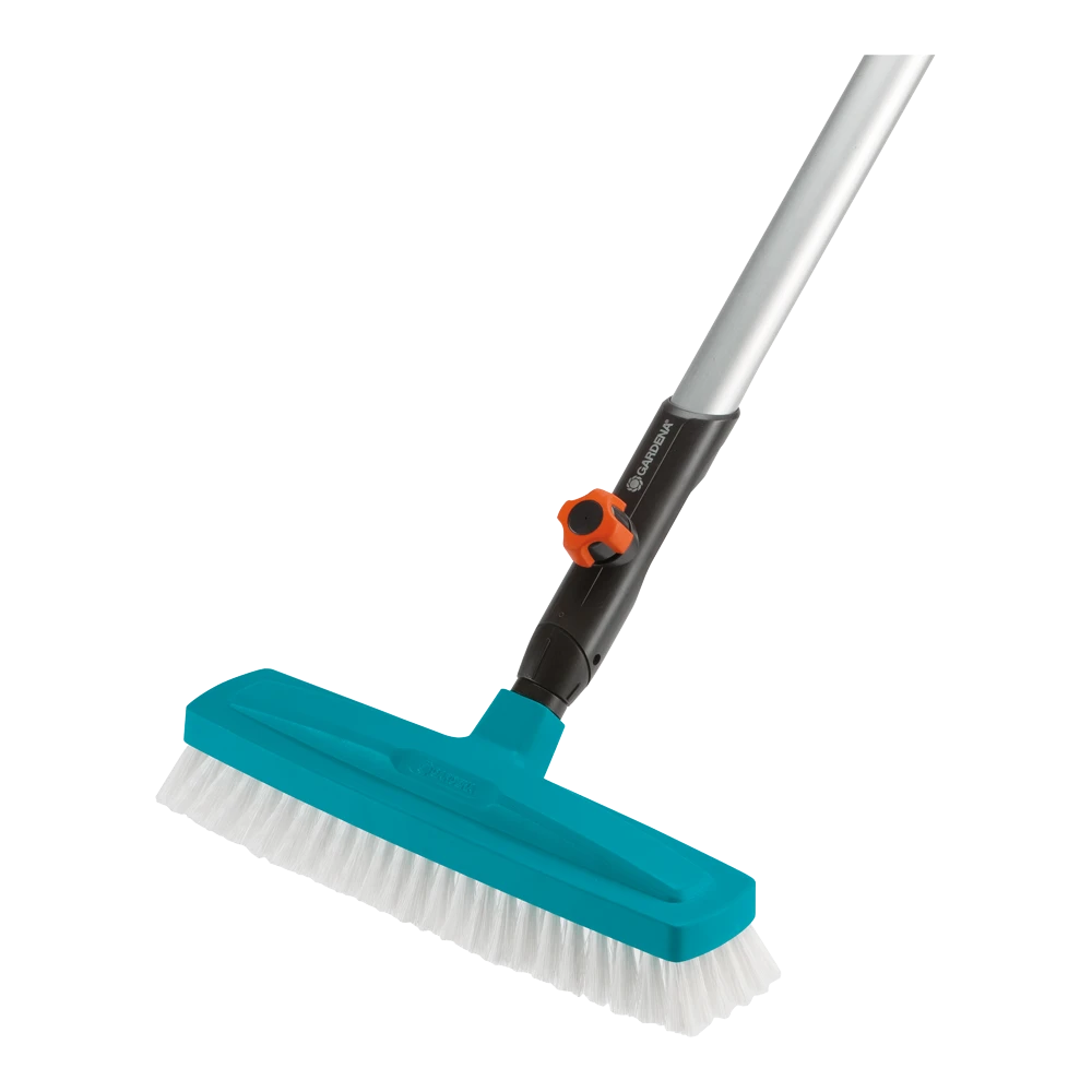 De GARDENA combisystem-schrobber is ideaal voor gebruik in huis. Dankzij de uiterst elastische polypropyleen borstels en een werkbreedte van 30 cm, plus een houder van slagvast kunststof, is de schrobber zelfs geschikt voor ingelopen vuil of vochtig materiaal. Praktisch: de randen zijn afgerond om het meubilair te ontzien. De schrobber is geschikt voor alle stelen van het GARDENA combisystem, waarbij GARDENA een steellengte van 130 of 150 cm adviseert, afhankelijk van uw lichaamslengte. De garantieperiode is 25 jaar.
