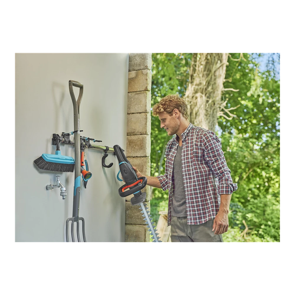 Met de Gereedschaphouder Plus van GARDENA bespaar je ruimte bij het opbergen van je tuingereedschap. De houder is ideaal voor het opbergen van zwaarder tuingereedschap, zoals spades en vorken, maar ook voor de producten uit het GARDENA combisystem en andere grotere gereedschappen. De houder is van aluminium gemaakt en imponeert met zijn belastbaar gewicht van 60 kg. Op de drie houders kun je gereedschappen met een gewicht tot 10 kg per stuk opbergen. De houders zijn flexibel en kunnen ook worden gebruikt om accessoires uit het combisystem en het Original GARDENA System op te bergen. De universele haak kan worden gebruikt voor het opbergen van grotere gereedschappen, zoals heggenscharen of bladblazers met hun brede handgreep. Deze haak kan maximaal 5 kg dragen. Dankzij de vergrendelbare muurbevestiging kun je de aluminium stang uittrekken zodat er nog meer gereedschap aan de houder kan worden opgehangen. De Gereedschaphouder Plus krijgt van GARDENA 25 jaar garantie na registratie binnen 3 maanden na aankoop op GARDENA.com/registration.